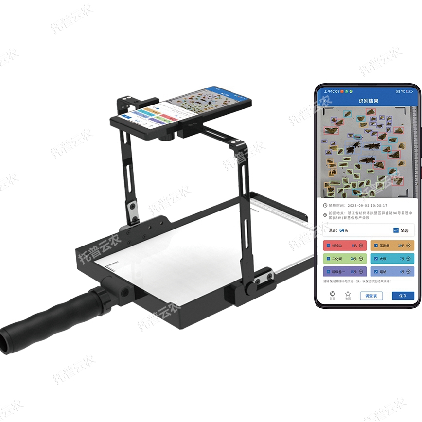 便攜式害蟲采集識別系統是一款適用于植保測報人員的田間害蟲調查設備,搭載人工智能圖像識別模型和配套小工具,配合專用App使害蟲種類和數量可視化呈現在用戶面前,可搭配不具識別功能的測報燈、殺蟲燈使用,解決其無法識別計數的痛點。